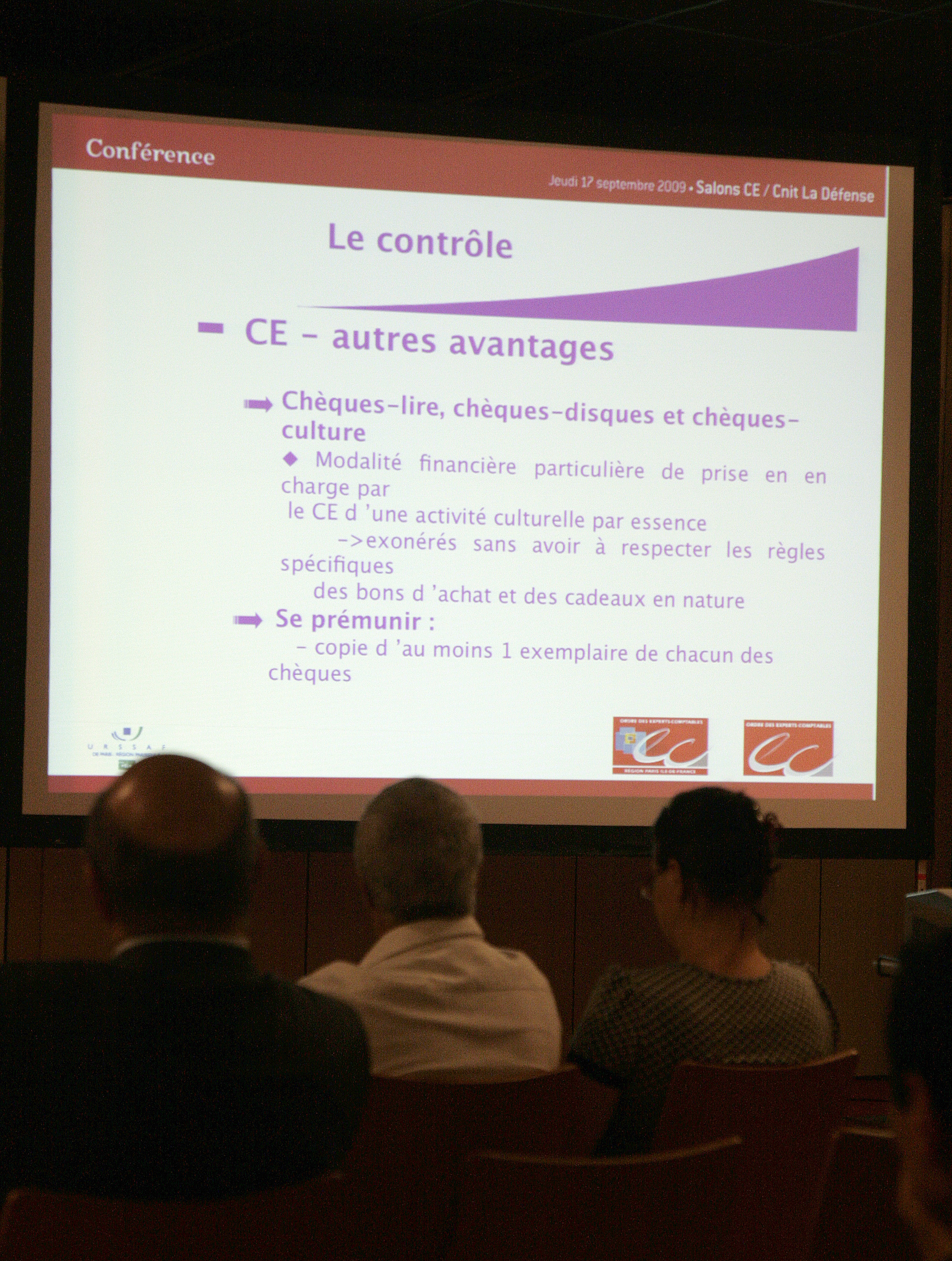 Lors de la conference du 17 septembre 2009 (cliquez ici pour charger le pdf) au salon des CE organisee par l’Ordre des Experts Comptables de Paris Ile de France en partenariat avec l’Urssaf de Paris,